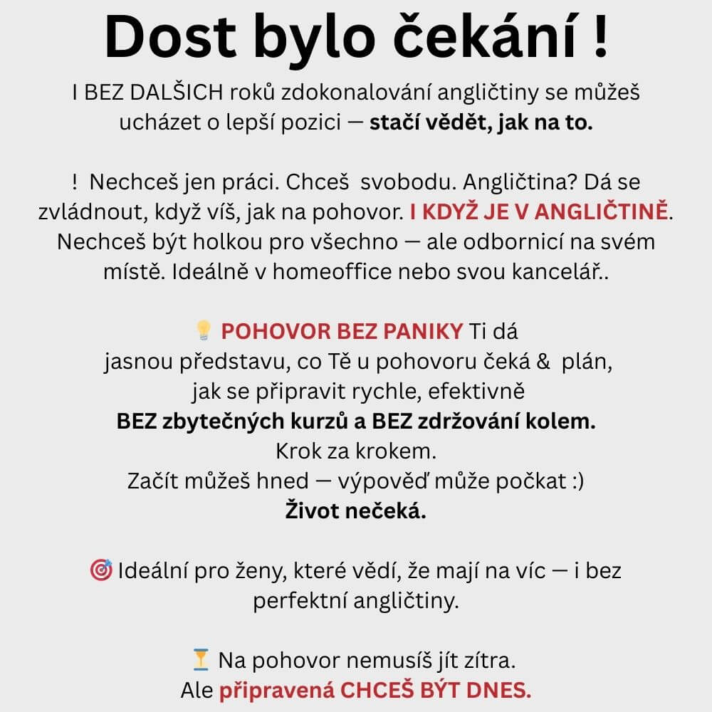 KONTAKTUJTE MĚ PRO VSTUPNÍ POHOVOR K PROGRAMU TRANSFORMACE ANGLIČTINY, KTERÝ VÁM OTEVŘE NOVÉ MOŽNOSTI !