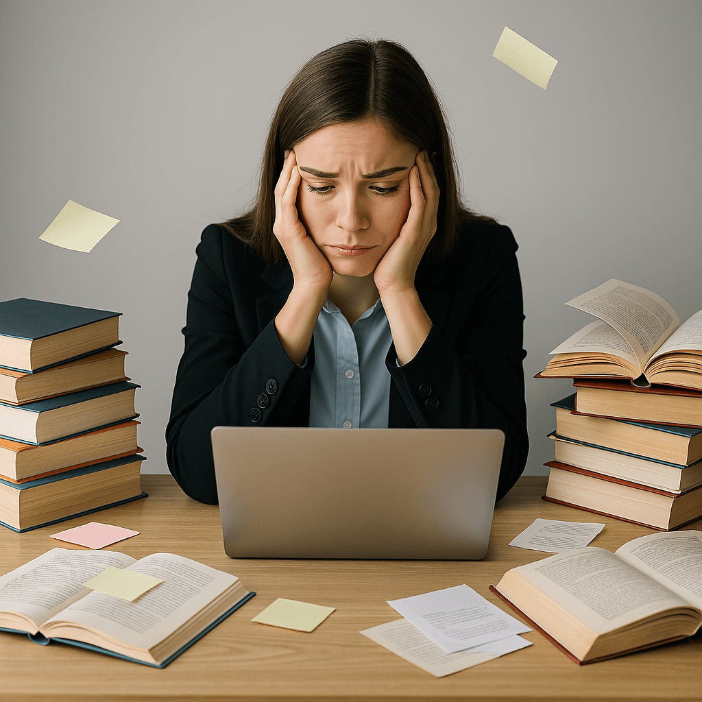 Strach, překlad z češtiny, pocit nedostatečnosti. Ale hlavně: chybějící systém, jak to celé spojit dohromady. SYSTÉM, jak se učit - vycházející z velké zkušenosti.